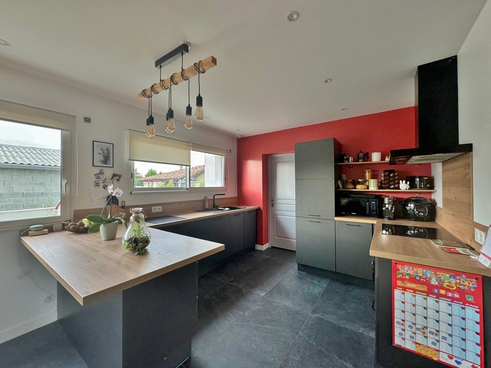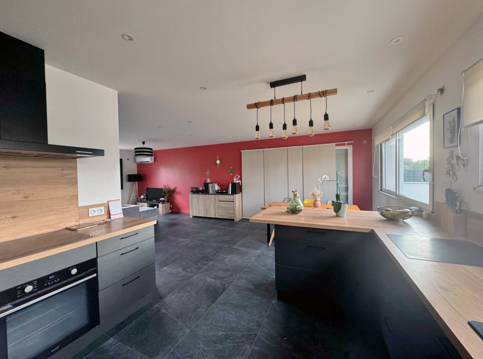 Dès votre entrée, vous serez charmé par un salon spacieux et baigné de lumière naturelle, ainsi qu'une cuisine ouverte élégamment aménagée pour vos moments de partage. Vous disposerez également de toilettes et d’un garage entièrement isolé et carrelé avec son coin buanderie attenant à la cuisine.